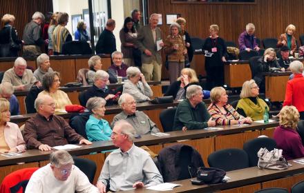 The audience is large, welcoming, and very engaged.